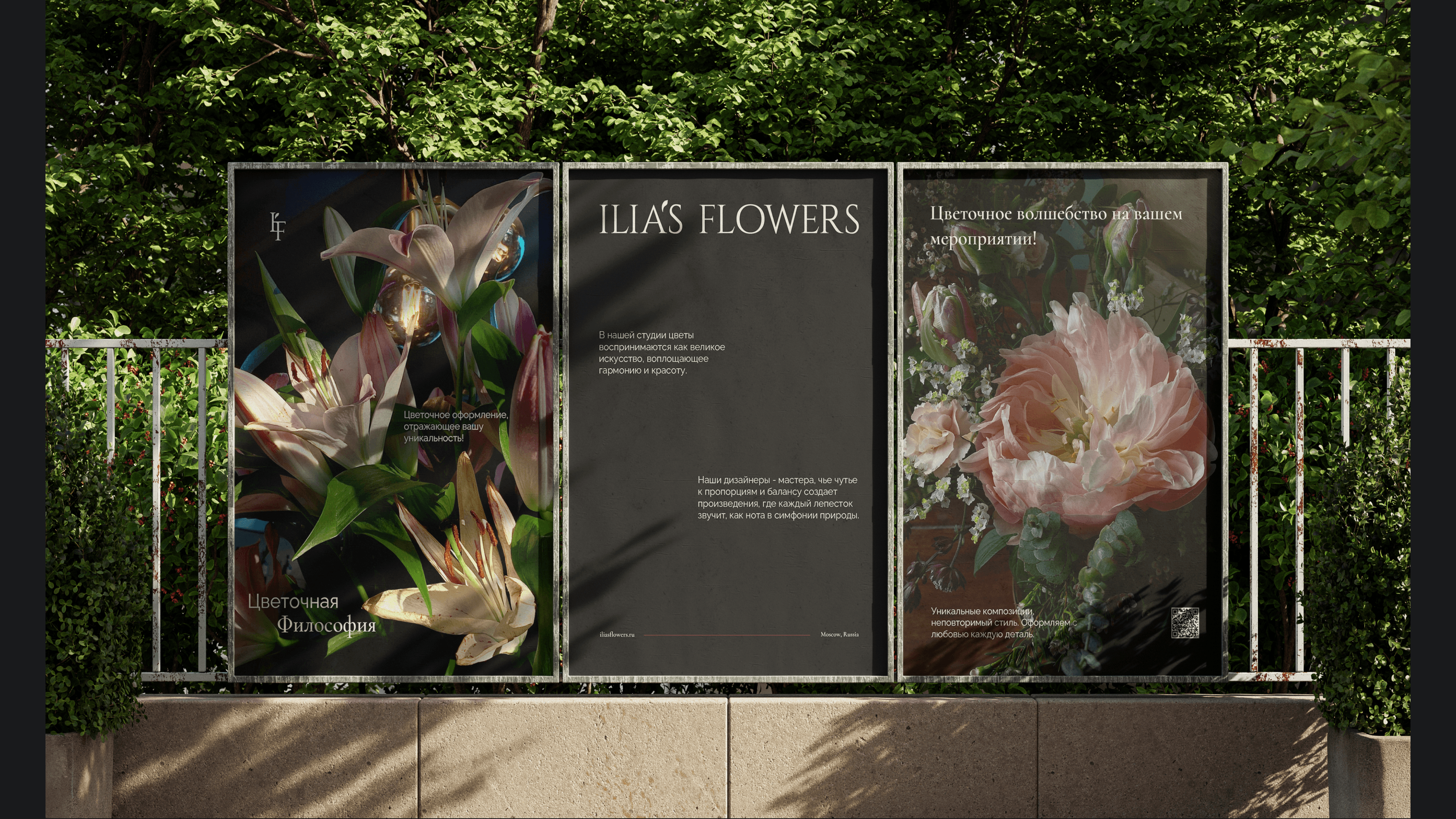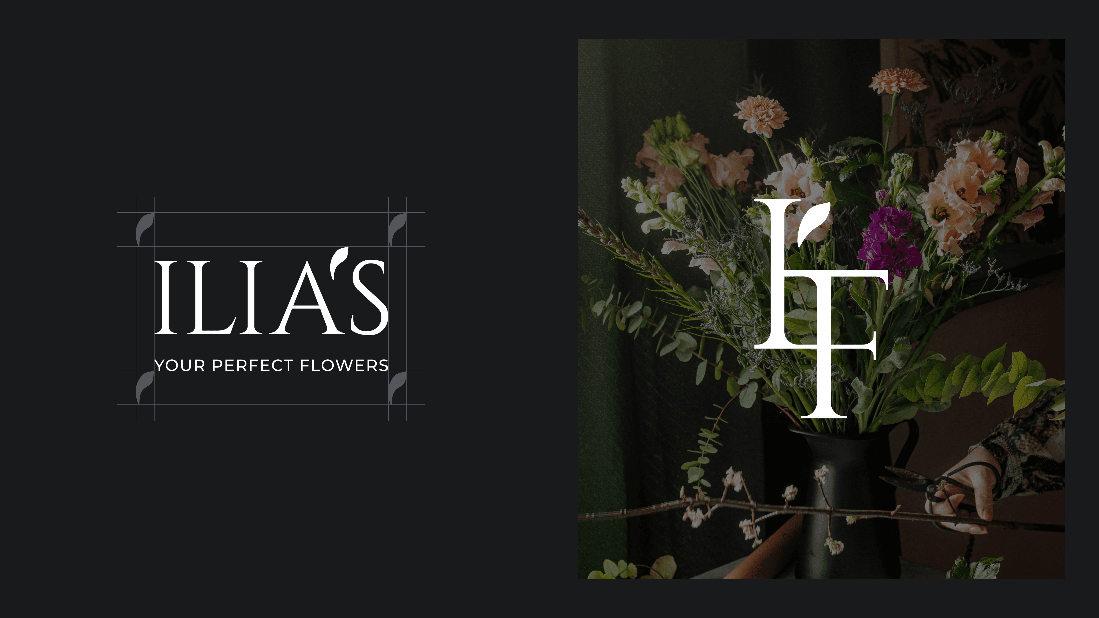 The main objective was to develop a refined brand identity for Ilia’s Flowers, a company specializing in floral decoration for the worlds of fashion, luxury, and design. The challenge was to create a visual language that reflected the brand’s core values — minimalism, modern classics, rigor, and elegance — while maintaining a balance between creativity and sophistication.