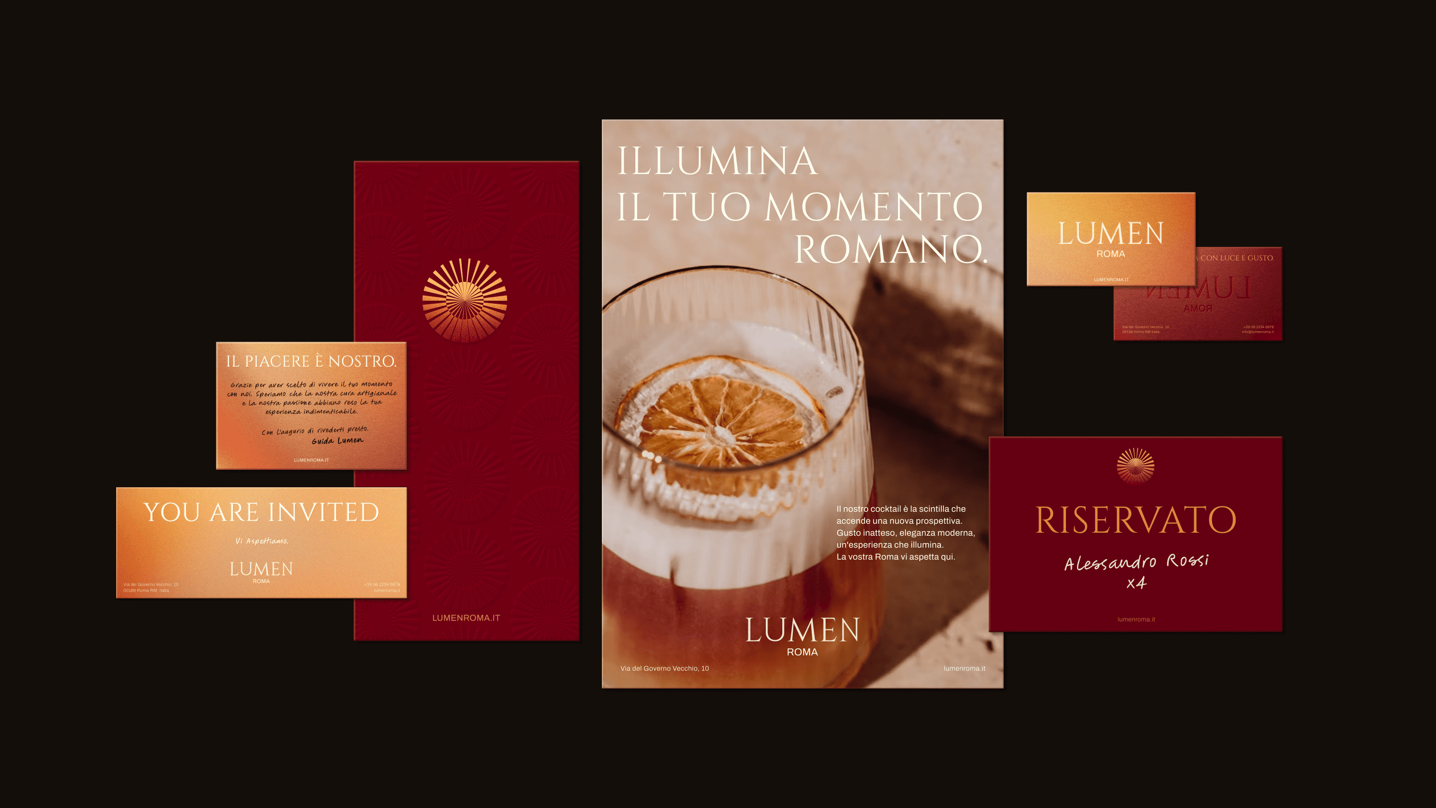 Lumen Roma is a comprehensive brand identity project that explores the seamless day-to-night experience.